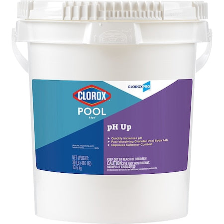 pH Balancer, Product Label pH Up, Container Type Bucket, Container Size 30 lb, Cleaner Form Granular, pH Value Alkaline, pH Level 11.6, Standards Not Applicable, Color White, Fragrance Unscented, Primary Chemical Sodium Carbonate