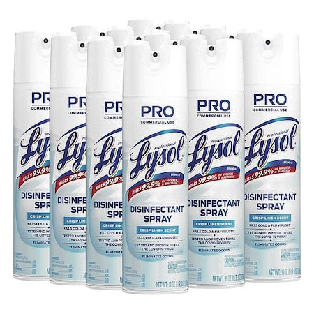 Disinfectant Spray, Primary Chemical Quat, Container Type Aerosol Spray Can, Container Size 19 oz, Ready to Use/Concentrated Ready to Use, Recommended Dilution Ready to Use, Fragrance Linen, Cleaner Form Liquid, Surfaces for Use On Hard Nonporous Surfaces, Standards EPA Registered, NSF Rated, OSHA, TSCA Compliant, Targeted Pathogens No Efficacy, Product Series No Series, VOC Content 0 Percent, Rinse Required Yes, NSF Rating D1, EPA Registered Yes, EPA Registration Number 777-99-675